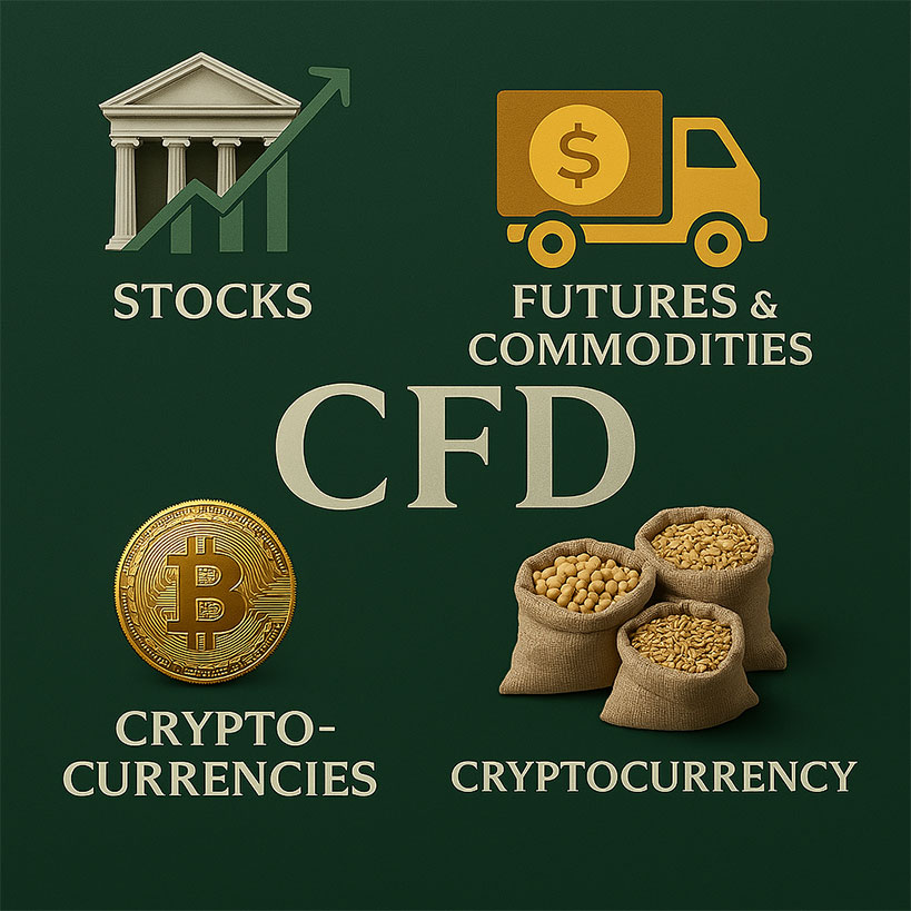 可交易的商品:期貨、現貨的商品,包含股票、指數、外匯、大宗物資、加密貨幣等.